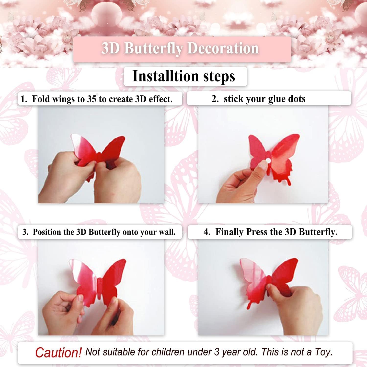 - Comes with Tack and got Double-sided adhesive in the body of the butterfly, can be applied on all smooth surfaces, such as walls, doors, closets, plastic, metal, fridges, laptops, TV, cars and so on